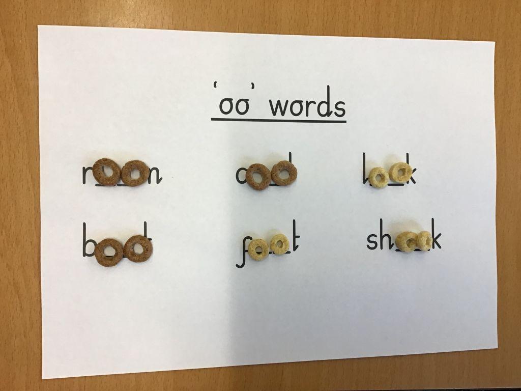 We had lots of fun learning the ‘oo- poo at the zoo’ and ‘oo- look at a book’ sounds in phonics this week! We made yummy words with cereal that we were able to read and munch, created rockets with oo word on the flames and used our magnetic letters to make words!