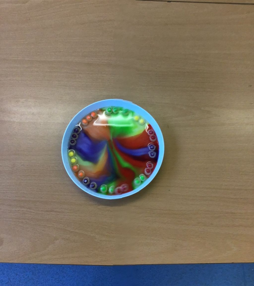 Year 1 have enjoyed completing some fabulous experiments and challenges as part of Science week. We tried to find the quickest way to melt an ice-cube! We placed an ice-cube by the heater, in the sun, covered it with tissue and put one in warm water. Some of us were surprised to find the warm water worked more quickly to melt the ice-cube than the heater. We also enjoyed our 'making colour move' challenge- we used skittles and water on a plate and were amazed by the results. Take a look at our photos below!