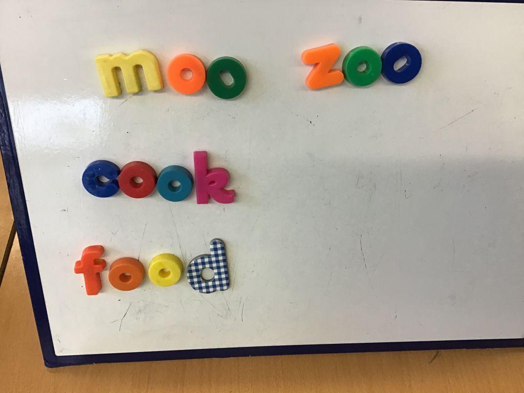 We had lots of fun learning the ‘oo- poo at the zoo’ and ‘oo- look at a book’ sounds in phonics this week! We made yummy words with cereal that we were able to read and munch, created rockets with oo word on the flames and used our magnetic letters to make words!