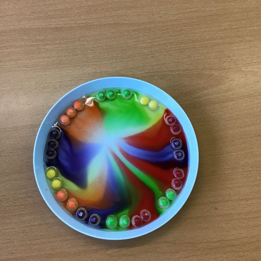 Year 1 have enjoyed completing some fabulous experiments and challenges as part of Science week. We tried to find the quickest way to melt an ice-cube! We placed an ice-cube by the heater, in the sun, covered it with tissue and put one in warm water. Some of us were surprised to find the warm water worked more quickly to melt the ice-cube than the heater. We also enjoyed our 'making colour move' challenge- we used skittles and water on a plate and were amazed by the results. Take a look at our photos below!