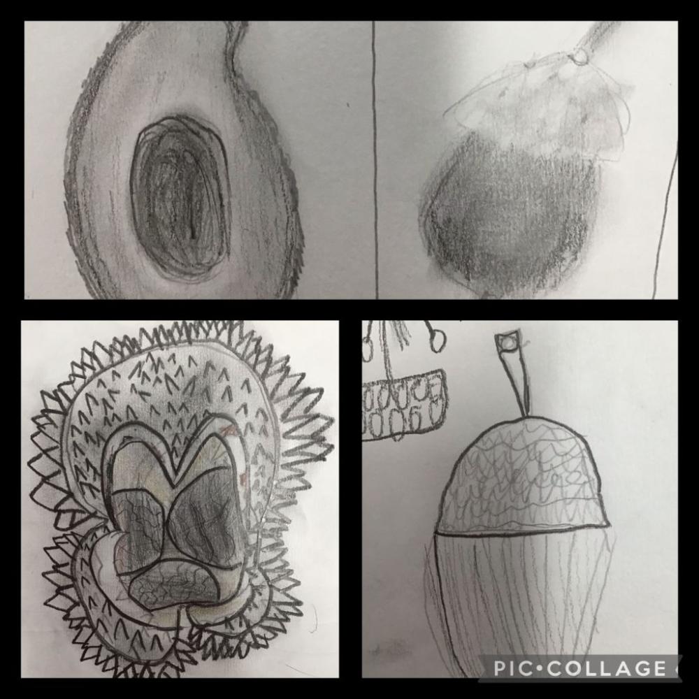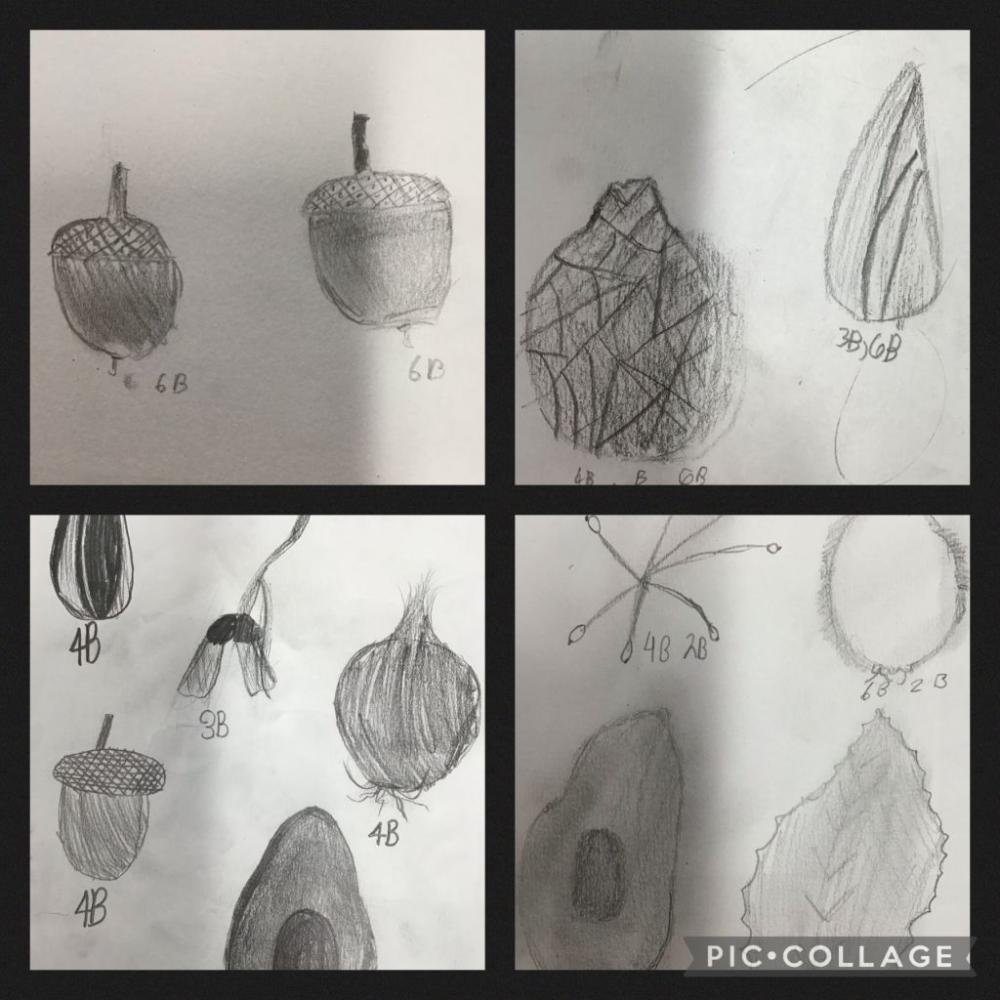 They all showed great creativity while completing observational drawings to depict a range of seeds and bulbs. The children used sketching pencils to add patterns, texture, tone and details to their drawings.