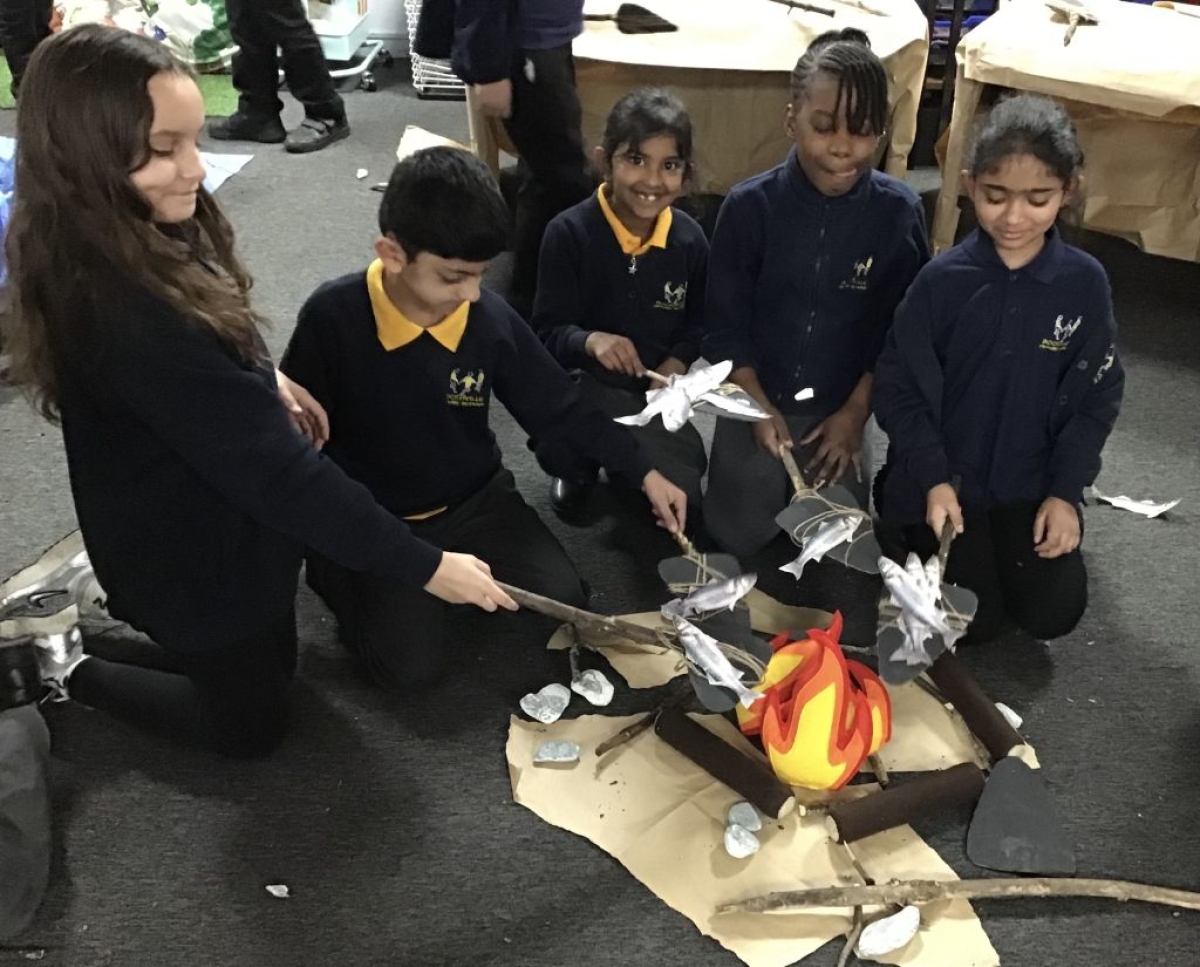 They used their imaginations to travel back in time approximately 12,000 years to the Mesolithic era. During the morning they became hunters and gatherers and acted as Nomads living in caves. They made spears to help them survive, hunted for fish in the river, collected berries, drew cave paintings, created fire to cook their food and experienced life living in caves.