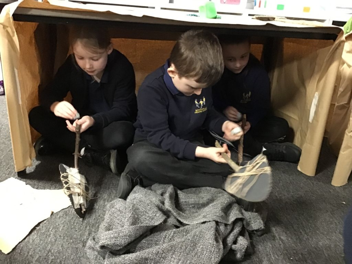 The Children in Year 3 took part in a Stone Age Experience Day to inspire them to develop vocabulary to use within their upcoming writing in English lessons, based on the book: Stone Age Boy by Satoshi Kitamura.